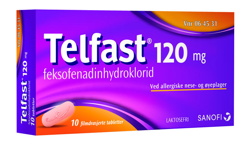 Telfast tabletter er et reseptfritt legemiddel som brukes til korttidsbehandling av allergiske nese- og øyeplager hos voksne og barn over 12 år. Allergi kjennetegnes ved serienysing, kløende, rennende eller tett nese, og kløende, røde og rennende øyne.