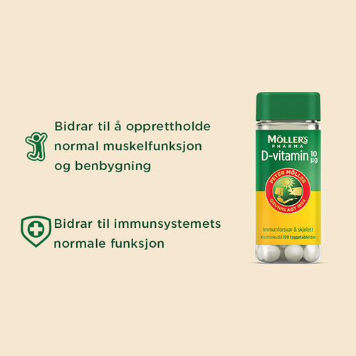 Möller's Pharma Vitamin-D 10µg 120 tyggetabletter med appelsinsmak 120 tyggetabletter