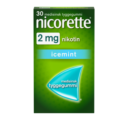 Nicorette Icemint tyggegummi 2 mg nikotin, 30 stk, slutte å røyke