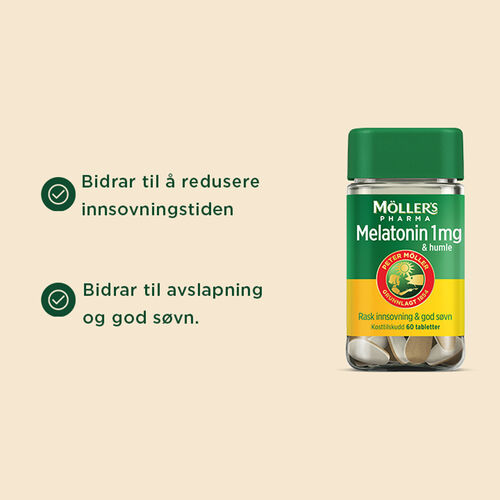 Möller's Pharma Melatonin 1mg og humle 60 tabletter