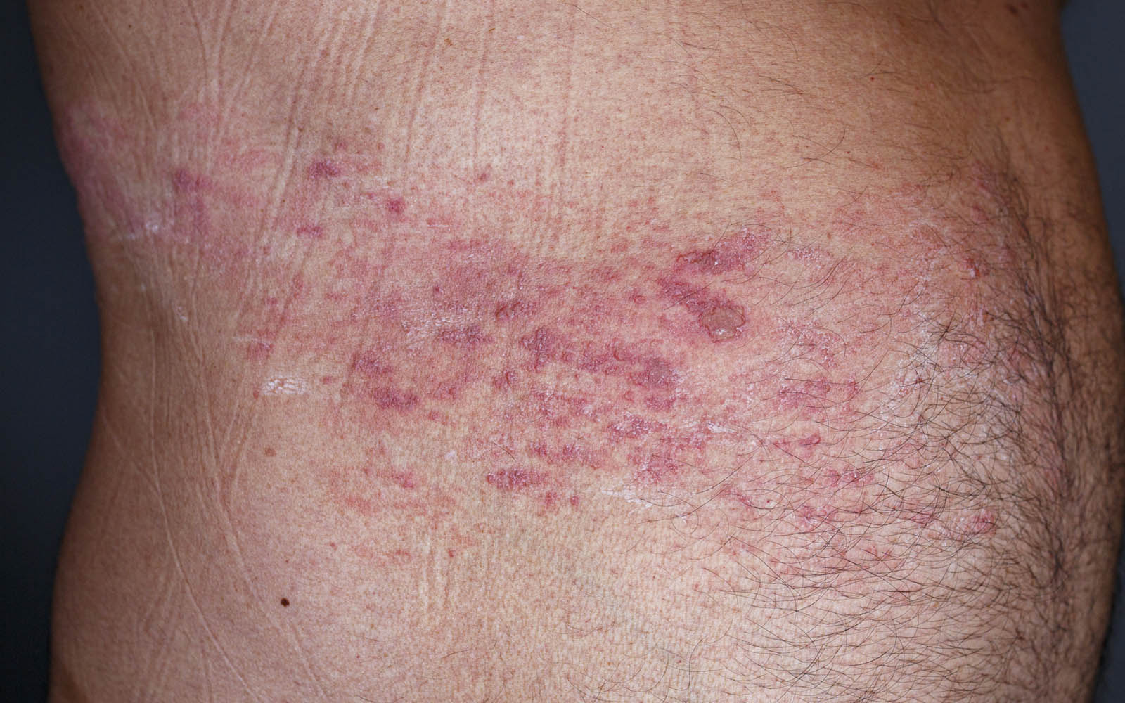 Hold utslettet rent og tørt for å unngå infeksjon, og bruk gjerne sårsalve. Dekk området med en bandasje som ikke fester seg til såret. Smertelindring kan du få ved å bruke smertestillende krem, eller ved å kjøle ned området med en ispose eller kaldt vann. Husk å vaske hendene godt etter berøring av utslettet.